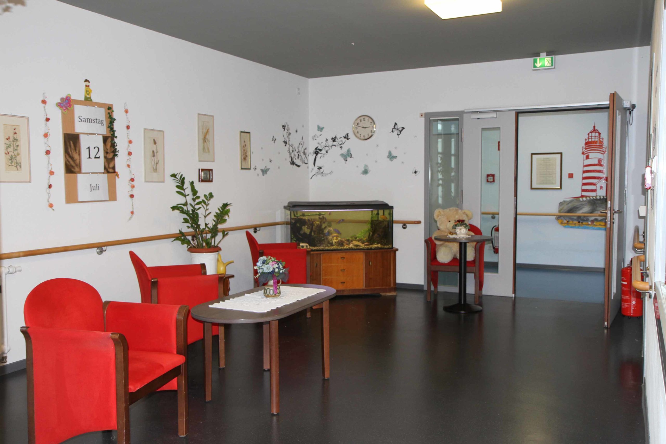 Galerie Blick in den GartenFoyerEiner unserer Speise- und VeranstaltungsräumeHier können Sie sich auf einen gemütlichen Plausch niederlassen oder Fische beobachtenAuch Bücher und Zeitschriften stehen zur VerfügungMöbelstücke aus alter Zeit erinnern an früherEines unserer Pflegebäder